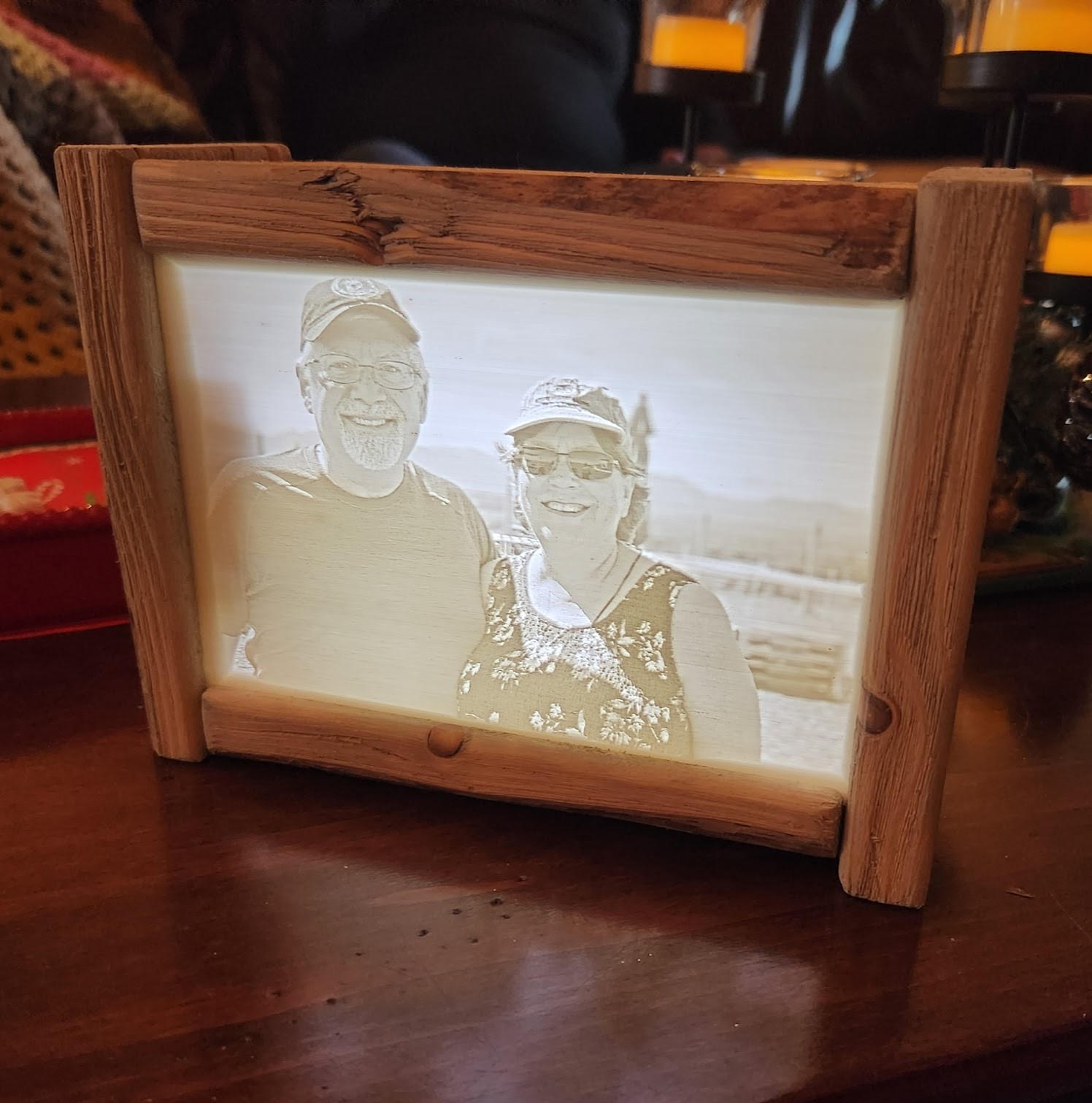 My wife and I recently received a lithoframe from Freeze's Lithophanes featuring a favorite picture of us. The backlit 3D effect is beautiful. The handmade craftsmanship is outstanding. It instantly became a conversation piece. ... A truly wonderful way to enjoy a favorite picture.